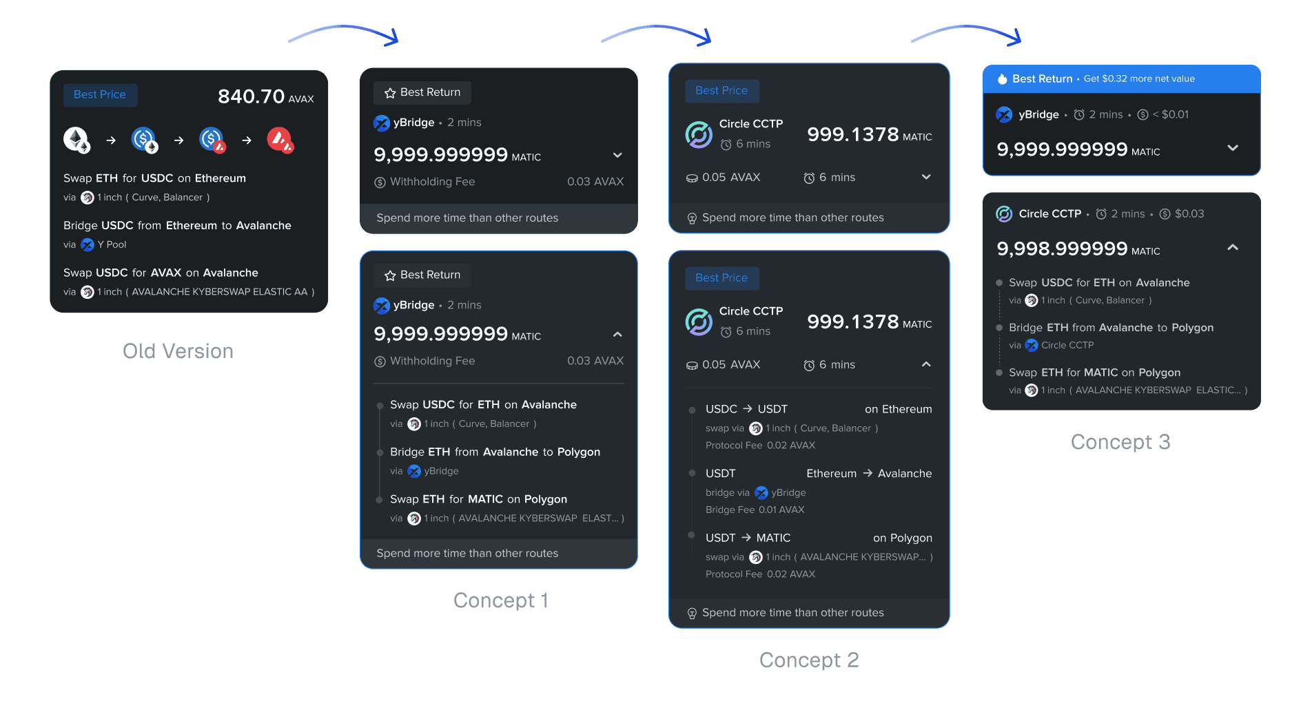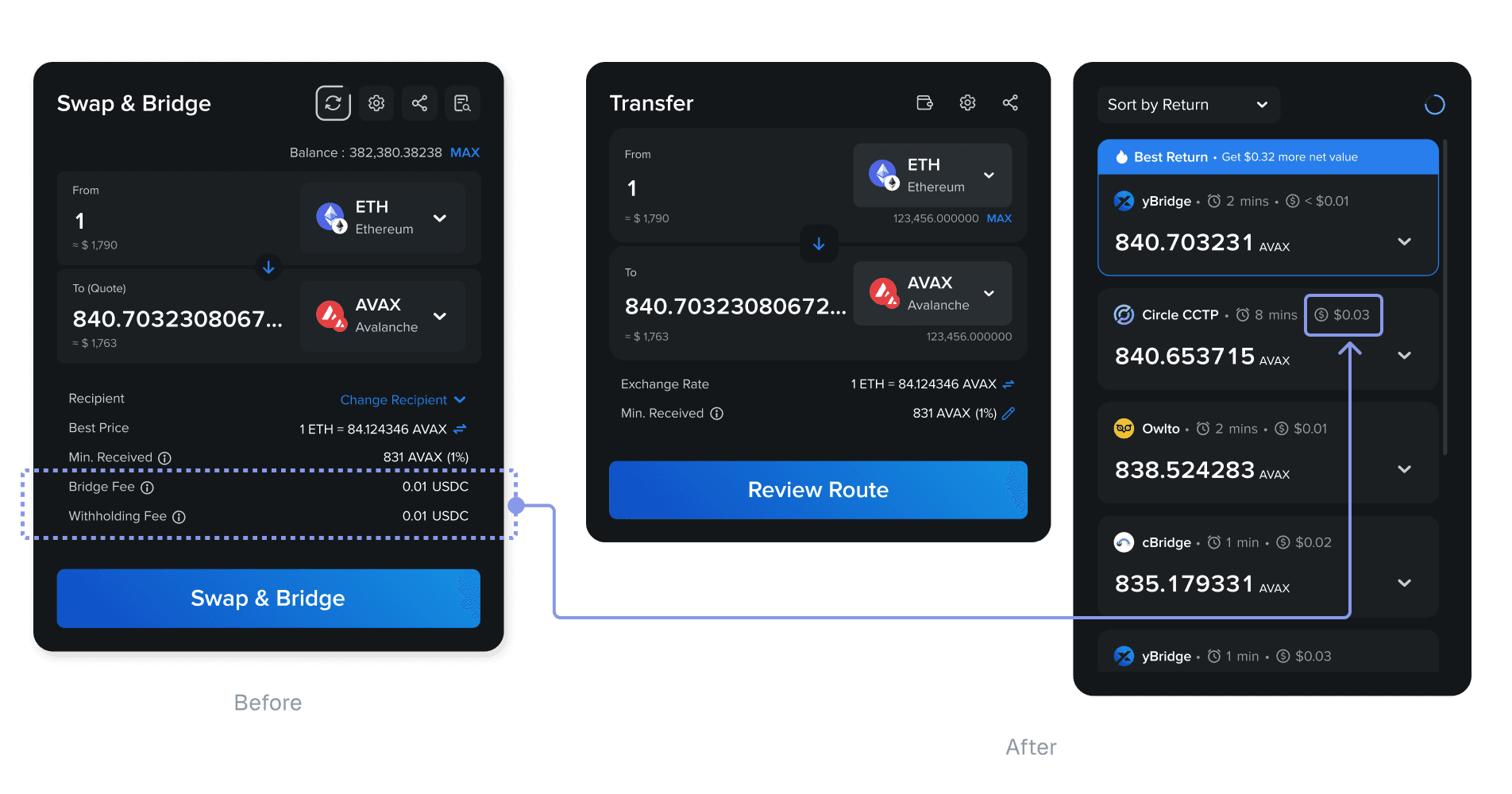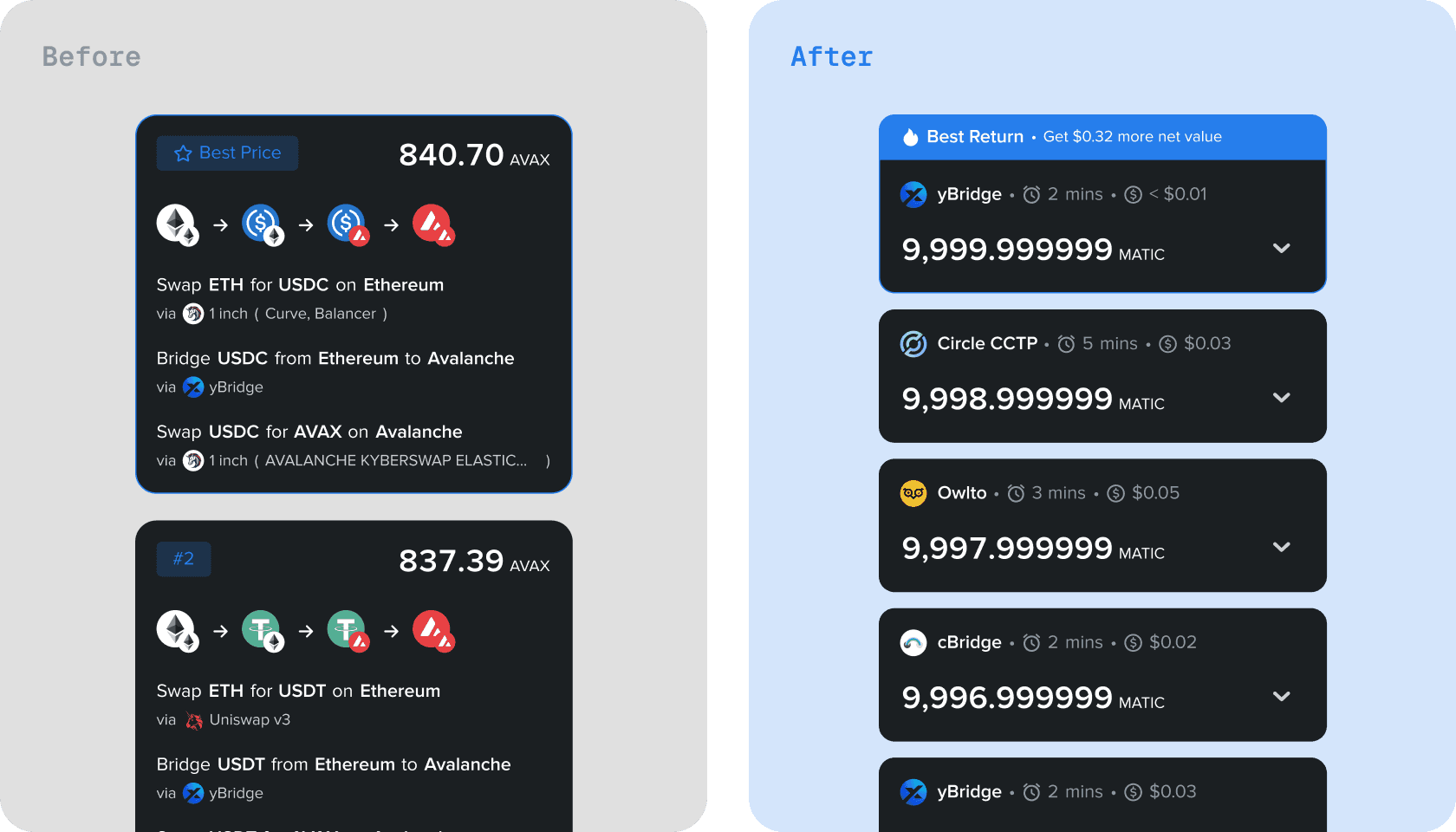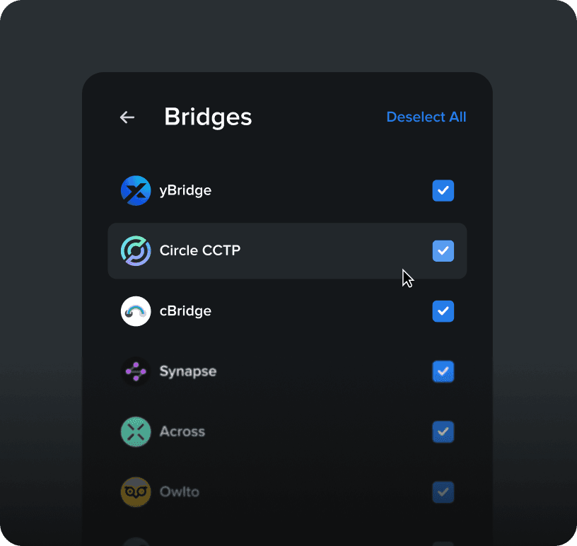 In varied cross-chain scenarios, the system lacked tools to help users customize results based on specific goals, such as prioritizing speed over rates.
